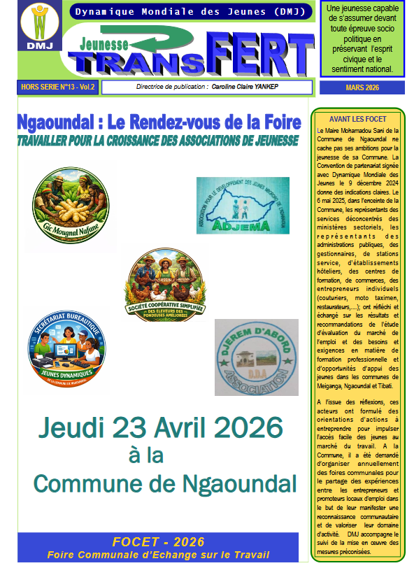 Les Foires Communales d’Echange sur le Travail se poursuivent progressivement à Ngaoundal et Meiganga, renforçant les initiatives de la DMJ, d’accompagner les jeunes, les associations aux dialogues sur l’emploi dans leur environnement.